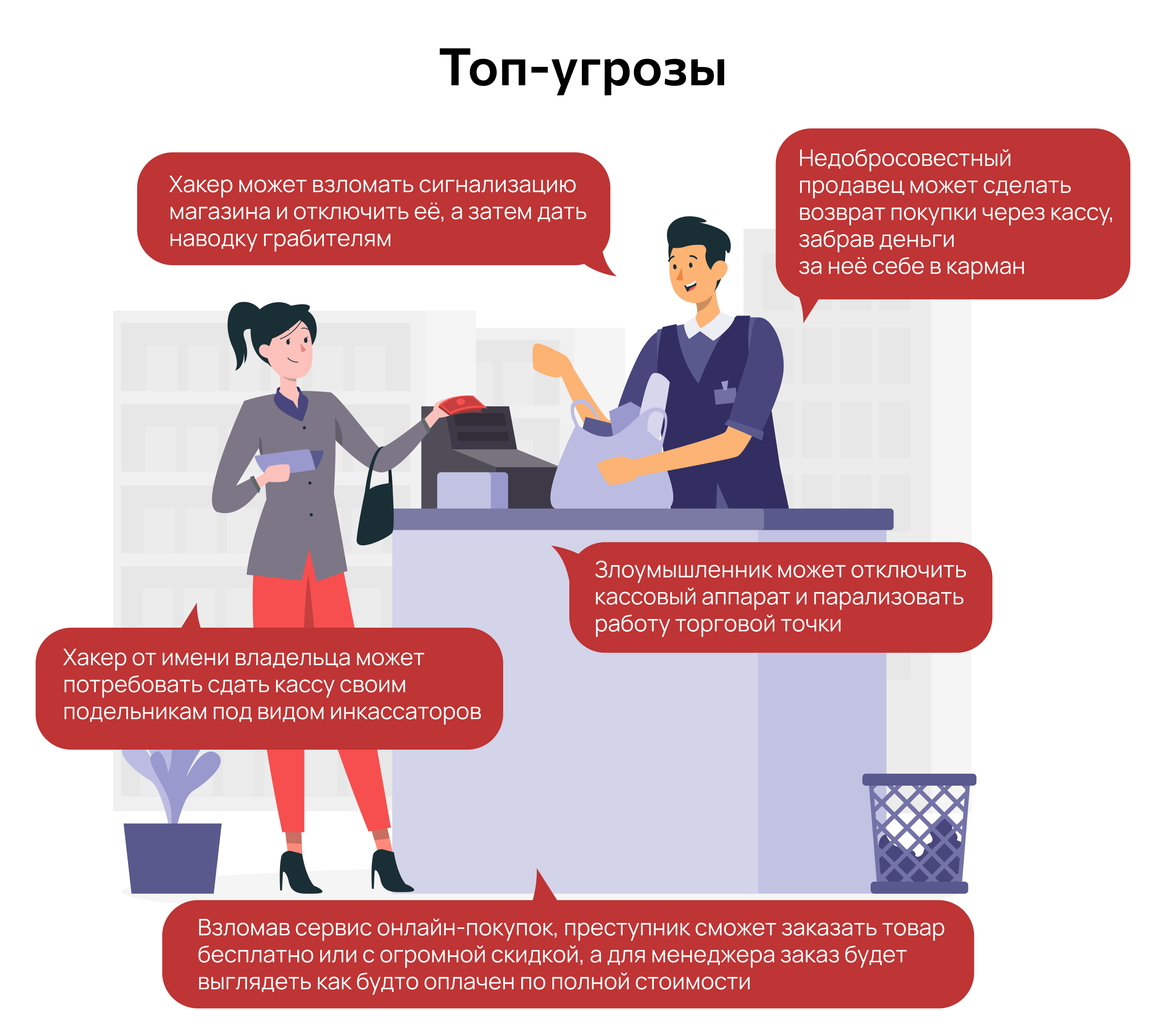 Даже небольшая торговая точка может приносить хороший доход. К сожалению, преступники тоже об этом знают и постоянно ищут способы обогатиться за чужой счёт. Хакеры могут подменить реквизиты платежей в терминале, создать виртуальную копию вашего магазина для торговли в онлайне, а обманутые хакерами клиенты будут винить вас в своих бедах.