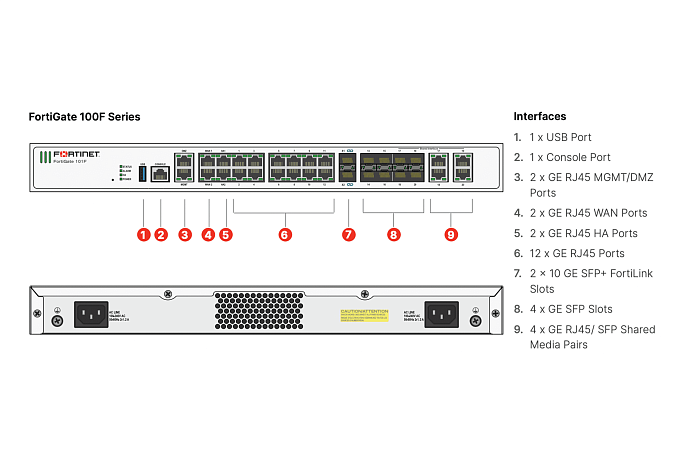 2x 10 GE SFP+, 18x GE RJ45, 4x Shared Port Pairs, 8x GE SFP