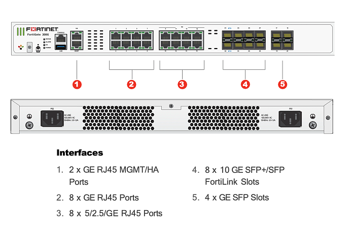 8x 10 GE SFP+, 8x 5GE RJ45, 10x GE RJ45, 4x GE SFP