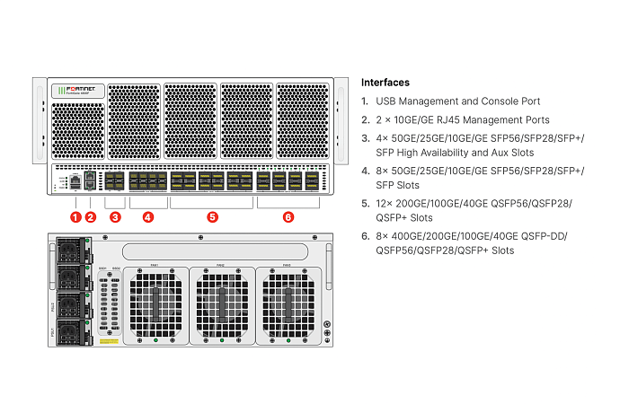 8x 400GE, 12x 200GE QSFP56, 12x 50GE SFP56, 2x 10GE RJ45