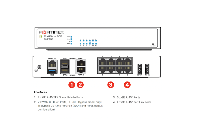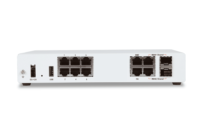 8x GE RJ45, 2x GE RJ45/SFP Shared Media Ports