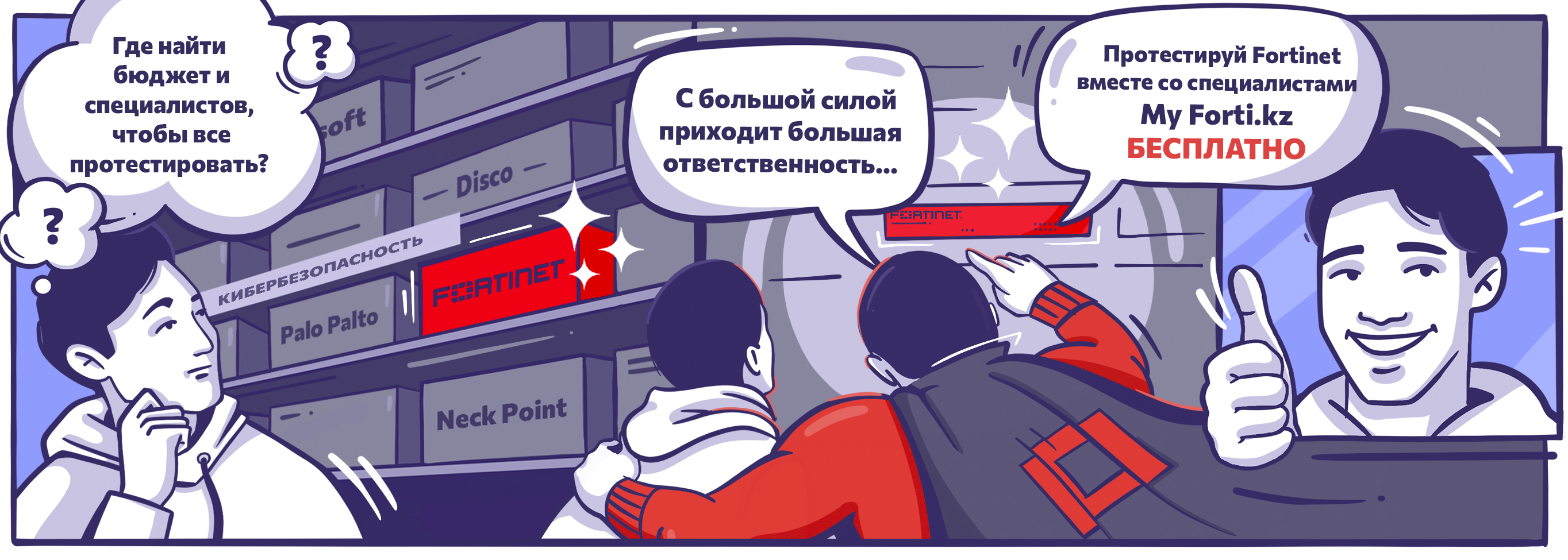 Myforti.kz предлагает вам протестировать Fortinet — лидера рынка кибербезопасности*. Специалисты Myforti.kz помогут выбрать и внедрить оптимальное решение для бизнеса. Они бесплатно привезут и установят оборудование, а затем обучат команду с ним работать. Проведут тестирование и подготовят отчет об ИТ-угрозах для бизнеса.